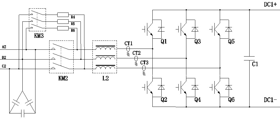 AC-DC 變換柜主要部分是 AC-DC雙向變換,采用四象限 PWM 技術(shù),能量雙向流動,功率因數(shù)高達0.99,并網(wǎng)諧波污染小。