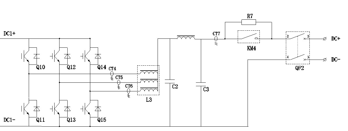 該系統(tǒng)采用四象限 PWM 整流、雙向 DC-DC 變換器、純數(shù)字化控制等核心技術(shù),具有能量雙向流動、100%能量回饋,輸出穩(wěn)定、低諧波污染、高精度、高功率因數(shù)等特點,并具有完善的保護功能。