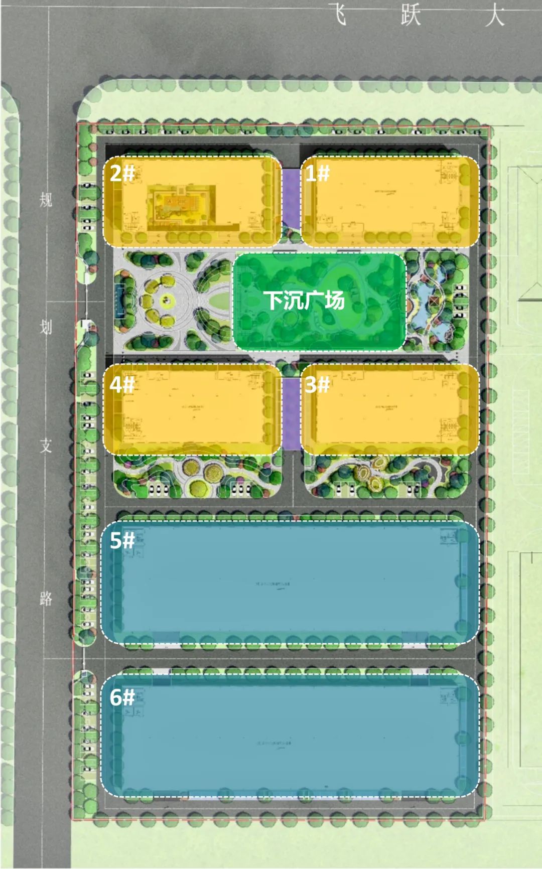 園區著力打造綠色生產辦公環境,設置綠肺中庭花園,精心規劃1800多平方米具有休閑性質的下沉廣場,并配套有餐廳和超市等服務設施。園區西側為新修建的規劃路,朝向規劃路設計有主、次出入口,內部交通流線布局合理,配套建設地下停車位127個,地上停車位54個,配建地上充電樁車位36個。
